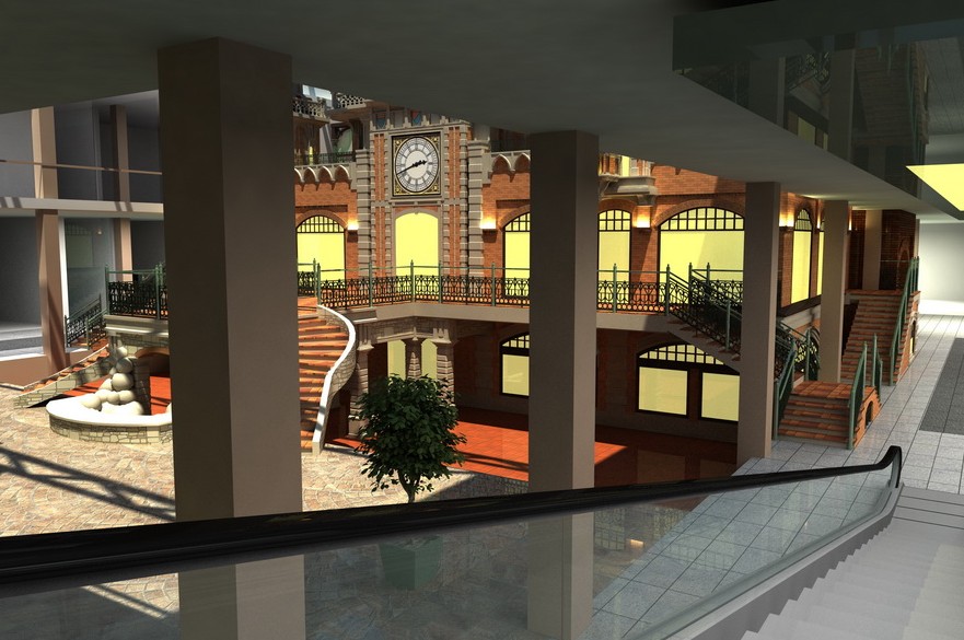 Главной фишкой строящегося торгового центра площадью 28 000 м.кв. станет возведенный внутри него на мощеной площади с фонтаном замок. Он объединит два этажа на главном входе.