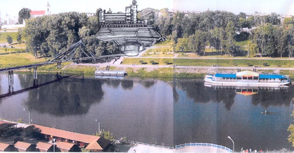– Что касается места под строительство амфитеатра, то, прикинув множество вариантов, поняли, что лучшего, чем сквер на улице Левонабережной, не найти, – рассказывает Александр Тараненко. – Туристы, которые совершают пешеходные прогулки по историческому центру Гродно, невольно обращают внимание на левый берег. И что они там видят? Заросли, малоэтажную хаотическую жилую застройку. Нет той красоты, которую мы видим с противоположного берега, рассматривая замки и Коложу. Амфитеатр и пешеходный мостик как единое целое украсят левый берег Немана, появится возможность проводить городские мероприятия самого высокого уровня. Кстати, левый берег удобен и с точки зрения положения солнца на небосклоне, а по территории наш проектируемый амфитеатр практически идентичен витебскому.