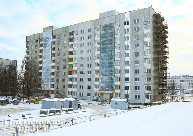 Бывшее общежитие ОАО «Гродножилстрой» реконструируется под дом с квартирами. Их будет 160 – однокомнатных и двухкомнатных. Полностью заменена кровля, проведена тепловая реабилитация здания, построенного 27 лет назад. Сейчас завершается монтаж новой системы инженерного обеспечения. В десятиэтажке установлены новые лифты. Согласно требованиям пожарной безопасности, изменены многие оконные проемы. Окна поставлены энергоэффективные. Жильцам остается получить ордер и заняться расстановкой мебели.