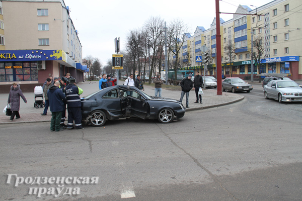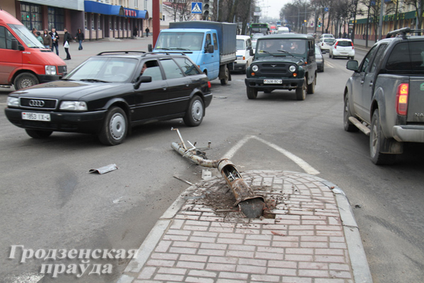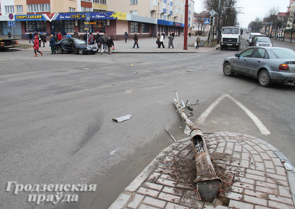 Серьезная авария в центре Гродно: «Мерседес» снес светофор и несколько раз перевернулся