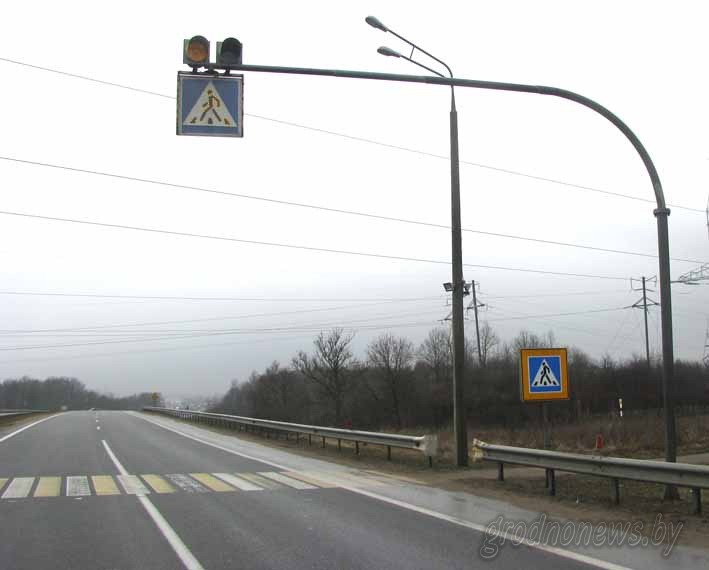 На въезде в Гродно по новой схеме подсвечен пешеходный переход