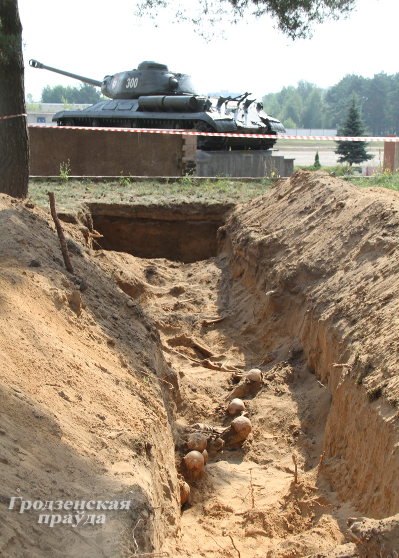 Останки 47 военнослужащих Красной армии обнаружены в неучтенном захоронении на территории военного городка Фолюш в Гродно.