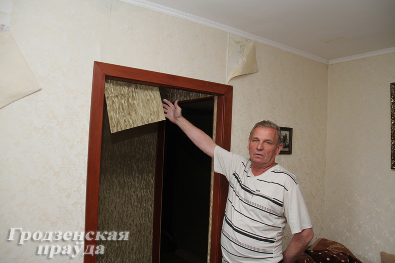 – Испорчены ламинат, обои, со стен и потолка осыпается штукатурка. Всю ночь с воскресенья на понедельник не спали: ливень на улице вызвал настоящий водопад в квартире, – рассказывает Михаил Черняков.