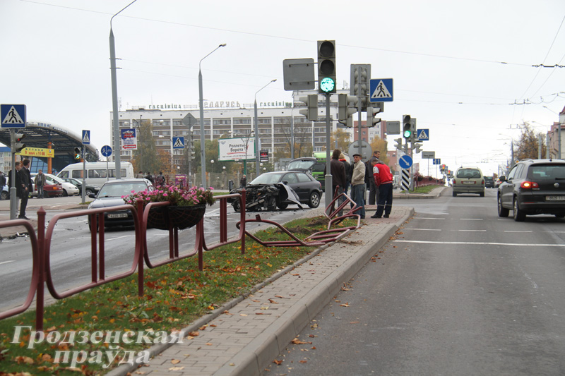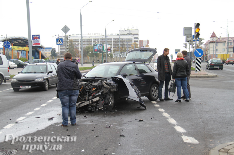 Очередное ДТП на одном из самых опасных перекрестков областного центра. На пересечении улиц Горького и Коммунальной у ЦСК «Неман» столкнулись «Ауди» и «ГАЗ».