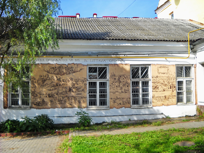 Дом №16 построен в конце XIX века. Одноэтажное кирпичное здание мало изменилось с тех пор, утрачено лишь его декоративное украшение. В 1903 году здесь было агентство Северного страхового товарищества. В октябре 1944 года открылась контора Промбанка. В 50-е годы в доме принимала пациентов городская женская консультация, а в 80-е – зубопротезное отделение областной больницы. В 90-е годы дворовой фасад дома украсила фреска с изображением известной гравюры Гродно XVI века. Рядом было популярное кафе «Кронон».