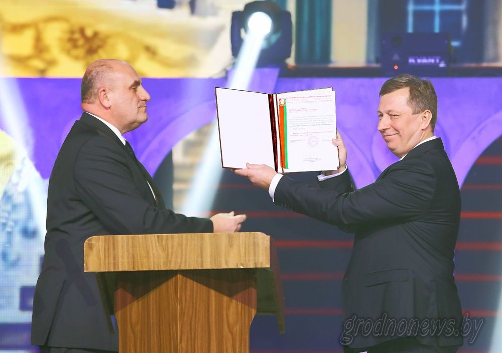Свидетельство о присвоении Бресту статуса «Культурная столица Беларуси-2015» заместитель министра культуры Беларуси Василий Черник вручил председателю Брестского горисполкома Александру Рогачуку.