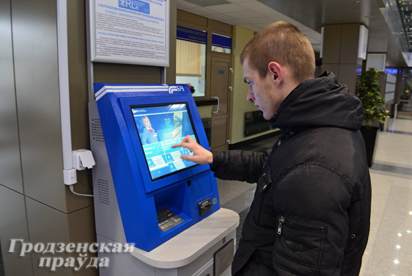 Пассажиры по привычке ищут банкомат, который раньше был установлен перед главным входом к билетным кассам. Но его здесь нет, как и в самом здании вокзала. Пока работает единственный банкомат ВТБ-банка на цокольном этаже. Но он читает только карту «Виза». На этом же этаже установлен платежно-справочный терминал «Белпочты». На втором этаже работают обменные пункты валюты Беларусбанка и Белинвестбанка. Оба банка подали заявку на установку банкоматов и получили добро от администрации вокзала.