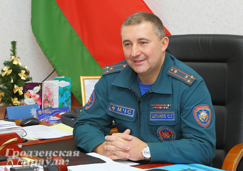 Сергей Шпарло руководит службой спасения Гродненщины немногим больше года, в МЧС он уже два десятка лет. Знает службу от А до Я. В мельчайших подробностях может рассказать о пожарах и чрезвычайных ситуациях, происходивших в районе его ответственности. Признается, что за столь долгое время не смог смириться с тем, что огненная стихия уносит человеческие жизни. И тем яснее видятся личная цель и задачи спасателей Гродненщины – не допускать печальных сценариев, опережать пожары и ЧС на несколько шагов, уберечь человеческие жизни.