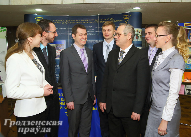 Ничуть не умаляя достижений корифеев науки, в Год молодежи представители власти решили ближе познакомиться с идеями и предложениями начинающих ученых. Свои разработки и идеи представили ГрГУ имени Янки Купалы, Гродненский государственный медицинский университет, Гродненский государственный аграрный университет, гродненский филиал частного учреждения образования «БИП – Институт правоведения», филиал государственного научного учреждения «Институт биоорганической химии НАН Беларуси», государственное научное учреждение «Научно-исследовательский центр проблем ресурсосбережения НАН Беларуси» и Гродненский зональный институт растениеводства НАН Беларуси. С идеями ученых очень подробно и внимательно познакомились губернатор области Владимир Кравцов, его заместитель Виктор Лискович, председатель областного Совета депутатов Игорь Жук, а также другие участники мероприятия.