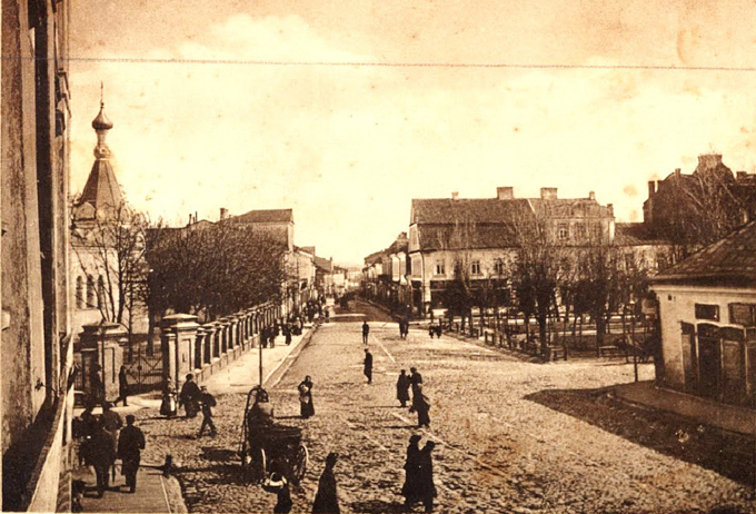 Вид на ул. Соборную и бывший дворец Сангушек. Начало ХХ в.