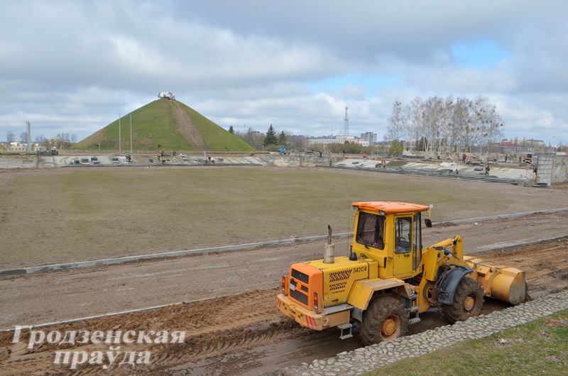 Работы по масштабной реконструкции Кургана Славы в Гродно идут полным ходом. Планируется, что мемориальный комплекс предстанет в обновленном виде к 9 Мая.