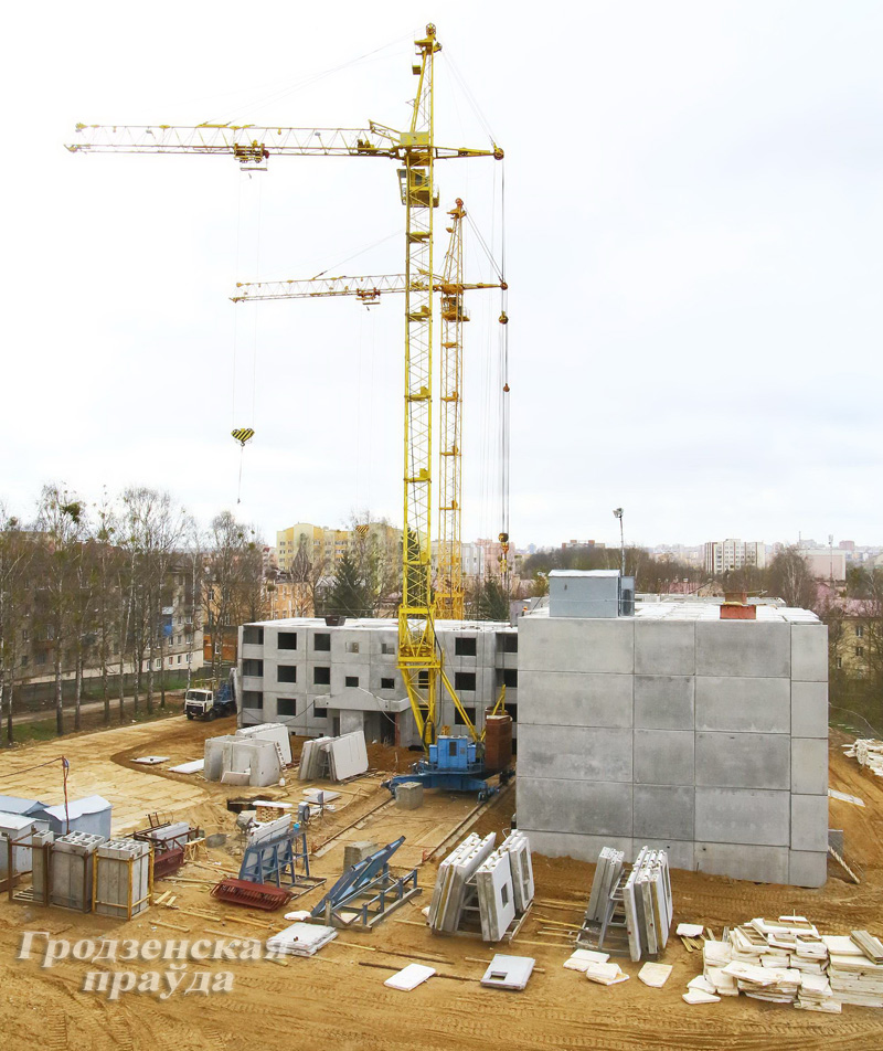 Сразу после отвода земли в городке ОАО «Гродножилстрой» без промедления начало сооружать два дома одновременно. Первая многоэтажка уже выросла до пятого этажа, вторая чуть ниже. Набранные темпы опережают условия конкурса, согласно которому дома должны быть построены до 1 марта 2016 года. Реалии показывают, что это можно сделать уже к концу нынешнего года. В каждой многоэтажке будет по 99 квартир, в основном двух- и трехкомнатные.