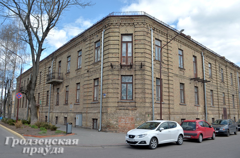 Одно из самых примечательных зданий на улице Волковича – дом под номером 1. Построен он в 1898-1902 годах, первоначально здесь находились казармы. Накануне Первой мировой войны совладельцами дома были губернский предводитель дворянства председатель окружного суда статский советник Сергей Яблоков и губернский агроном коллежский секретарь Павел Минков. В 1924 году дом был передан городским властям: здесь открылась семилетняя женская школа им. Королевы Ядвиги.