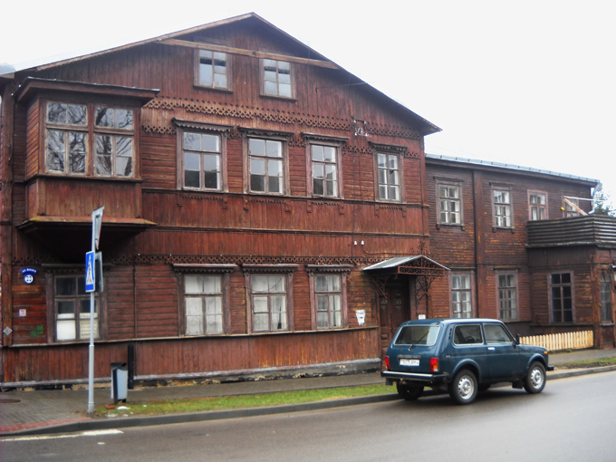 Да и сам дом № 23 интересен своей архитектурой. Двухэтажное деревянное здание построено в начале ХХ века в стиле так называемого «русского деревянного модерна». До Второй мировой войны здесь жил отставной судья Онихимовский, жена которого происходила из известного княжеского рода Оболенских. Еще накануне войны во дворе дома работал фонтан со скульптурами.