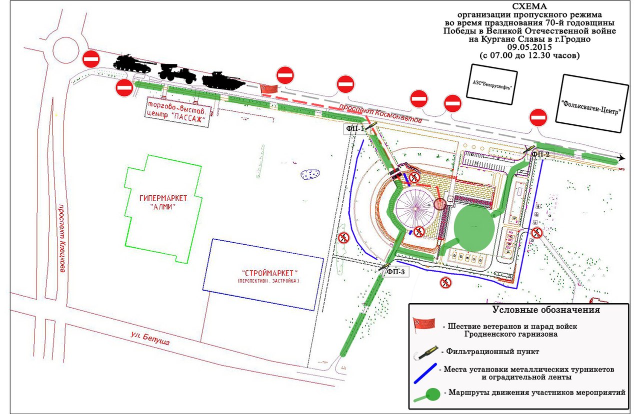 Попасть на мероприятия на Кургане Славы можно будет со стороны проспекта Космонавтов и улицы Белуша.