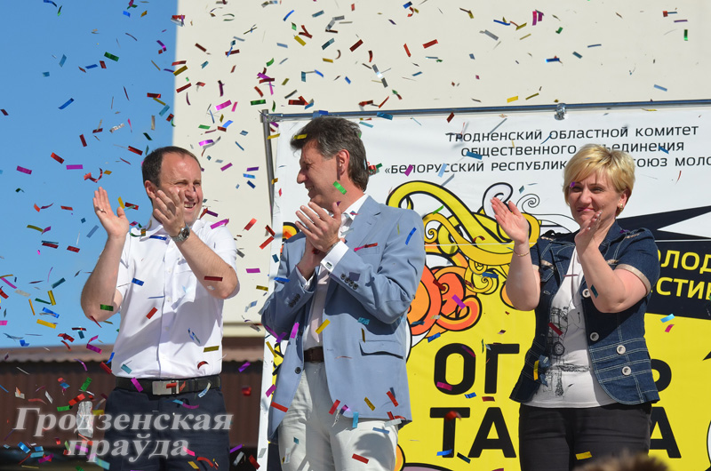 У молодежного центра торжественно дали старт сразу двум праздникам: Дню молодежи и Биг-мини фестивалю. Открыли их заместитель председателя горисполкома Зоя Кулеша, начальник главного управления идеологической работы, культуры и по делам молодежи облисполкома Павел Скробко и первый секретарь областного комитета БРСМ Александр Ковш. Они же рассказали, что самые интересные коллективы выступят на Дне молодежи на «Славянском базаре в Витебске».