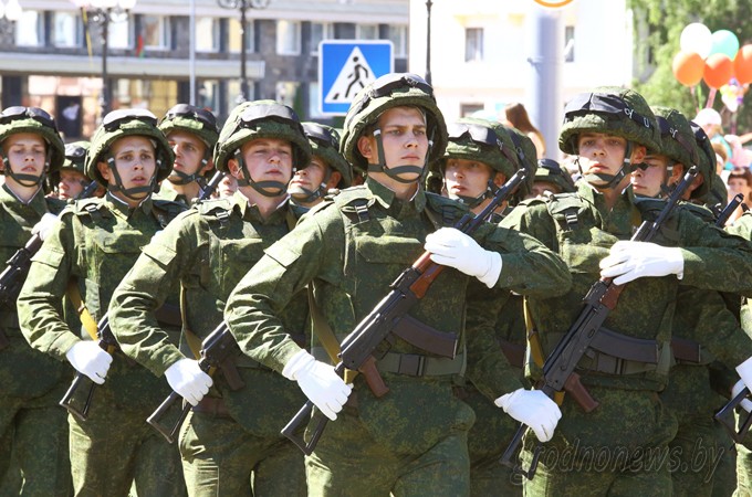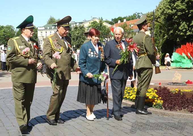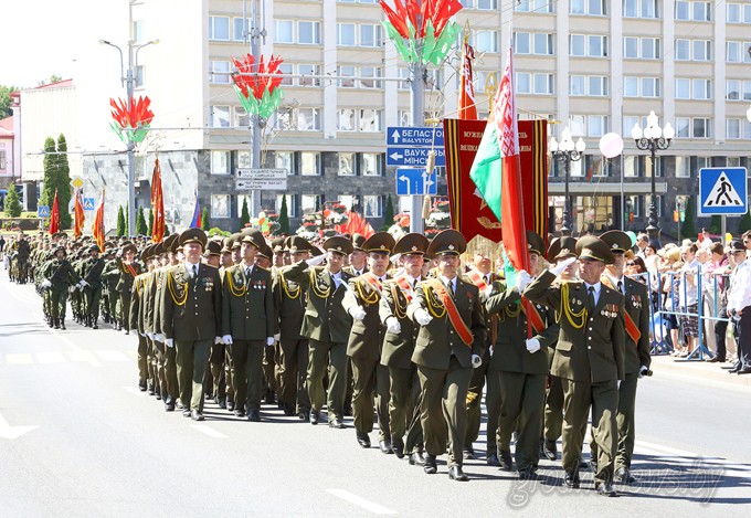 Несмотря на жаркую солнечную погоду, в центр города на праздничные торжества собрались тысячи гродненцев. Празднования открыло шествие представителей учреждений образования Гродно, за ними проследовала молодежь города, представители вузов, медицины. Накануне Гродненская область признана победителем в номинации за достижения в 2014 году наилучших показателей в сфере социально-экономического развития и занесена на Республиканскую Доску почета. Шествие трудовых коллективов лучших предприятий и организаций города возглавили работники ОАО «ГродноАзот» во главе с генеральным директором Константином Маяновым. Также в шествии приняли участие к представители коллективов ОАО «Молочный Мир», «Гродненская табачная фабрика «Неман», «Гродненский мясокомбинат», «Гроднопромстрой», «Гродножилстрой», треста «Гродногорстрой», предприятий объединения «ЗОВ», «Гроднооблгаза». Жителей областного центра и гостей города поздравил с одним из самых важных праздников для белорусов председатель областного исполнительного комитета Владимир Кравцов. Он от имени всех гродненцев выразил глубокую благодарность ветеранам за их вклад в освобождение Беларуси от немецко-фашистских захватчиков: [i]– Сегодня любому непредвзятому человеку понятно, что Беларусь проводит в жизнь собственный внешнеполитический курс. Мы стремимся к сотрудничеству со всеми странами и сами выбираем себе союзников, не приемлем никакого диктата и санкций. Наша суверенность обеспечивается интеллектом народа, высоким образовательным уровнем населения, прежде всего, молодежью, использованием на практике научных достижений. Наша независимость держится на трудолюбии: все что имеем, создано нашим народом, нашими руками. Нет сомнения, что мы преодолеем негативные явления в экономике, для этого у нас есть и воля, и опыт, и квалифицированные кадры. [/i][i]В особом почете у нас ветераны Великой Отечественной войны. На вашем примере нужно учиться служению Родине. Ни один из вас не будет оставлен без внимания – это наш гражданский и сыновний долг. Спасибо Вам за Победу![/i] От имени ветеранов выступила ветеран Великой Отечественной войны, участница партизанского движения Лидия Житкевич. Владимир Кравцов наградил победителей ежегодного конкурса «Человек года Гродненщины». Этого почетного звания и денежной премии удостоены в различных номинациях 25 лауреатов. Руководство области и города, представители предприятий, организаций областного центра возложили венки и цветы к памятнику погибшим воинам в парке имени Жилибера. После окончания митинга прошел парад войск Гродненского гарнизона. Праздник продолжился в парке имени Жилибера, где состоялись выступления творческих коллективов, развернули выставки народные умельцы. Ближе к вечеру на площади Ленина с концертными программами выступят ансамбль танца, музыки и песни «Белые Росы», Национальный академический концертный оркестр Республики Беларусь под руководством Михаила Финберга. Гродненцы примут участие в республиканской акции «Споем гимн вместе». В завершение праздника небо раскрасит праздничный салют.