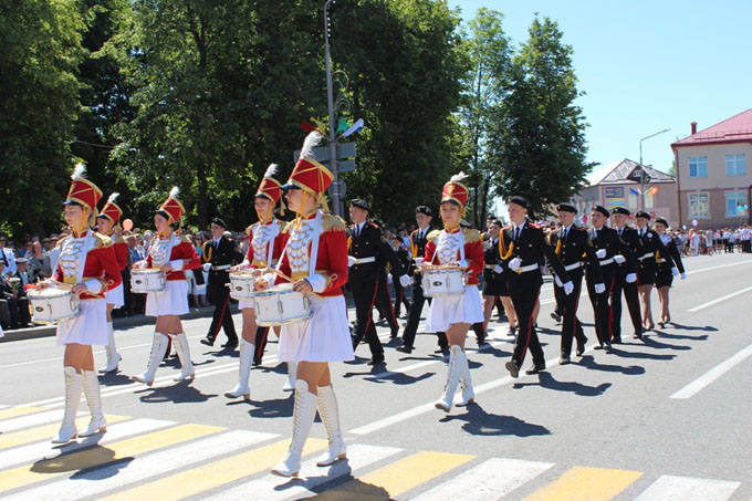 Торжественным маршем по улицам Слонима прошли военные, задавали темп знаменитые слонимские барабанщицы.