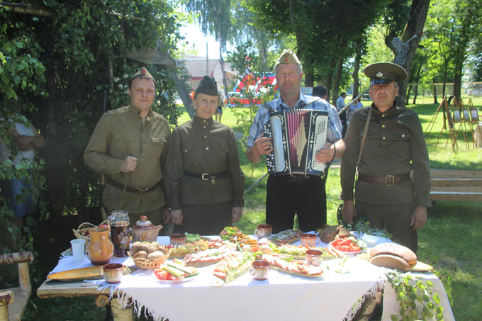 В парке по традиции угощали гостей солдатской кашей в стилизованной палатке «Полевая кухня». Районная библиотека представила палатку фронтовой библиотеки, а промышленные и сельскохозяйственные предприятия – свои тематические подворья.