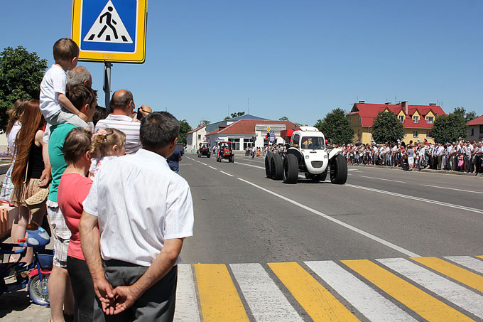 . По улицам райцентра прошла колонна техники белорусского производства.Открывали парад велосипеды и мотоциклы, продолжили машины сельхозназначения, автобусы, легковые машины и два новых спецавтомобиля МЧС на базе белорусского грузовика.