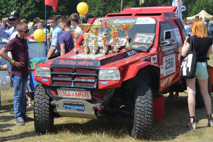 Пока одни привлекали публику ярким стилем и высокой стоимостью, другие сделали ставку на размер. Не заметить этот автомобиль было просто невозможно. МАЗ - гордость белорусской команды «МАЗ-СПОРТавто», машина, которая не раз принимала участие в таких международных ралли-рейдах как «Дакар» и «Шелковый путь», машина высотой 3,5 метра и весом более 9 тонн…И которая, в солнечный субботний день обеспечила теньком десятки посетителей фестиваля.