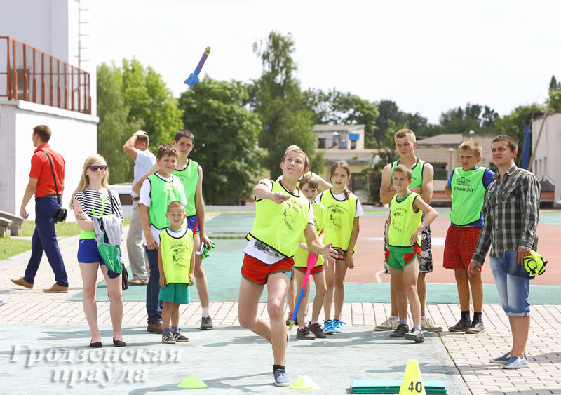 В так называемую фан-зону превратилась центральная аллея ЦСК «Неман», где идут концерты, открыты торговые объекты. Хватает и активных развлечений. Так, ребята со всей области собрались для участия в турнире по детской легкой атлетике. Это специальный комплекс командных соревнований для младшего школьного возраста – небольшие барьеры, «ракеты» для метания, шары и мячи.