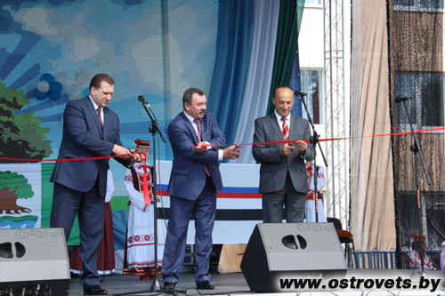 Красную ленточку, что символизировало открытие выставки-ярмарки, перерезали председатели Островецкого, Ошмянского и Сморгонского районов Адам Дмитриевич Ковалько, Мирослав Эдмундович Саросек и Геннадий Васильевич Хоружик.