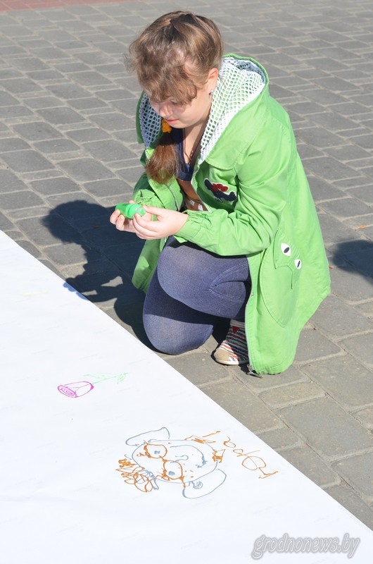 На Кургане Славы также планируются изменения – здесь появится музей воинской славы. А в День города свою площадку у Кургана разместили военные: выставка оружия, концерт, показательные выступления – посмотреть было на что. *** Возле дома-музея Элизы Ожешко развернулась ART-площадка. Рисовали карандашами, мелками, кисточками и даже пальчиками. Увлеченно намазывали краску на ладоши не только дети, но и взрослые. Каждому хотелось оставить свой след на общем трехметровом полотне. - Я нарисовал синего человечка, - пояснил свое «художество» семилетний Артем, - но вместо головы у него алмаз. Почему же у человечка алмаз вместо головы Артем рассказать не смог, зато ответ нашелся у тети, с которой он пришел на праздник: «Потому что каждый человек уникален, как алмаз». Полотен на празднике было много: бумага, ткань, декоративная галька… Но лидером в привлечении внимания стал "Москвич". Баллончики, трафареты, несколько умелых детских рук и довольно быстро однотонный автомобиль покрылся разноцветными цветами, бабочками и звездами. - Этой акцией мы хотим привлечь внимание к Гродненскому детскому хоспису, - рассказал куратор и организатор автоклуба «Сделано в СССР» Артем Голуб. – Всем рисующим мы предлагаем пожертвовать посильную сумму тяжелобольным детям. *** На площадке возле Института «Гродногражданпроект» прошла выставка архитектурных проектов «Прошлое, настоящее, будущее города Гродно». Постоянную экспозицию дополнили детальные макеты зданий Гродненской областной филармонии и развлекательного центра «Галактика». Удачной находкой стала установка фотобаннеров, которые отражают все основные изменения, произошедшие в облике города за последние несколько лет. Здесь и обновленная Советская площадь, и транспортная развязка, и кольцевая автомагистраль, и новое здание Лютеранской кирхи…Отдельный стенд посвящен долгожданной реконструкции Старого Замка. С 12 века в век 21 – прошлое, настоящее и будущее этого памятника архитектуры объединилось в одном фотоколлаже. *** Леший, кот Базилио, Весна-Красна, царевна Несмеяна, Мальвина, Алладин… Впервые в Гродно прошел парад сказочных персонажей. В костюмированном шествии приняло участие больше 300 человек. Такой подарок для детей в честь праздника подготовили педагоги города.