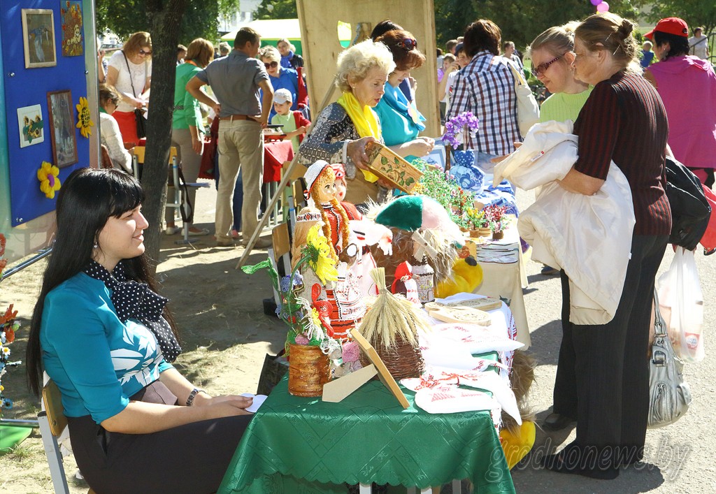 *** А вот площадка на Левонабережной, кажется, заслужит звание самой живописной. Декорациям у выступающих на небольшой сцене артистов были … виды старого города. Увидеть все это стоило вживую. Многочисленных гостей праздника угощали солдатской кашей, удивляли показательными выступлениями военных и милиционеров-кинологов. *** Праздник у стен Аграрного университета имел и практическую направленность. Ко Дню города приурочили традиционную выставку винограда. Знали ли вы, что в Беларуси культивируется свыше 400 его сортов? Плюс ко всему сельхозпроизводители реализовывали свою продукцию. Яблоки, например, можно было купить по 6-10 тысяч за килограмм. *** Девятовка праздновала на площадке у стен СШ №27. Фишкой праздника стала выставка осенних букетов и мастер-классы от кружковцев Центра творчества детей и молодежи «Спектр».