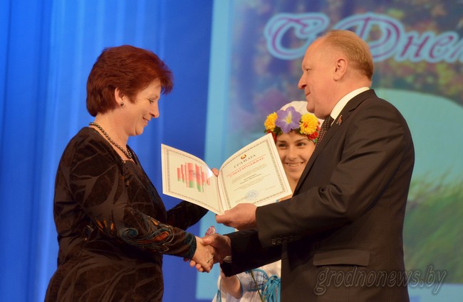 Понимая важность труда учителя, государство поощряет самых успешных педагогов. В предпраздничный день некоторые из присутствующих также получили награды. Благодарственным письмом председателя областного исполнительного комитета награждена заведующая дошкольным центром развития ребенка № 97 Галина Смурага. Татьяне Литвинчик, воспитателю ясли-сада № 78, вручено Благодарственное письмо председателя областного Совета депутатов. Грамотой Минобразования отмечена воспитатель Гродненской специальной общеобразовательной школы-интернаты для детей с нарушением зрения Татьяна Антонович. Еще целая плеяда талантливых педагогов областного центра получили награды от городского исполнительного комитета, Совета депутатов, администраций районов Гродно и профсоюза работников образования и науки.