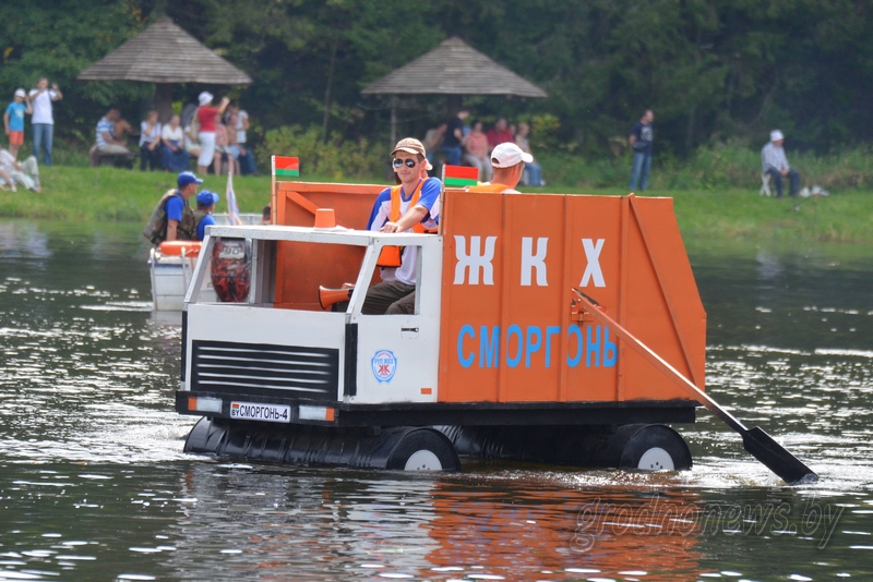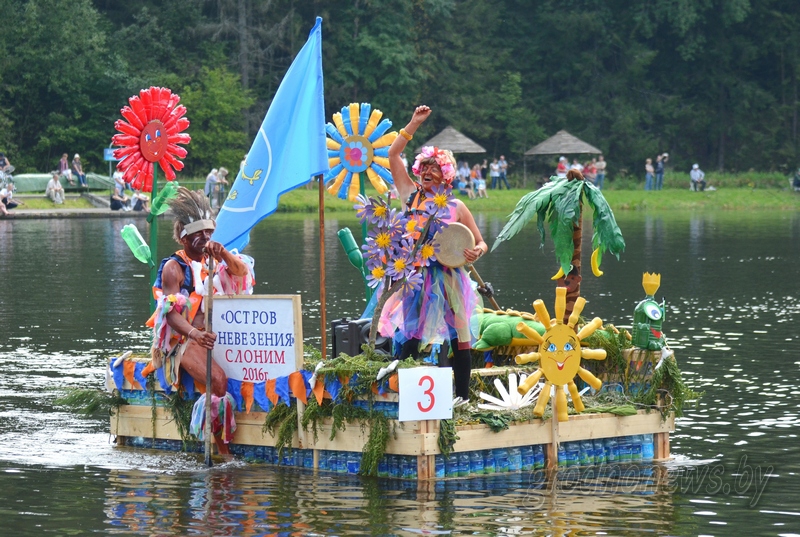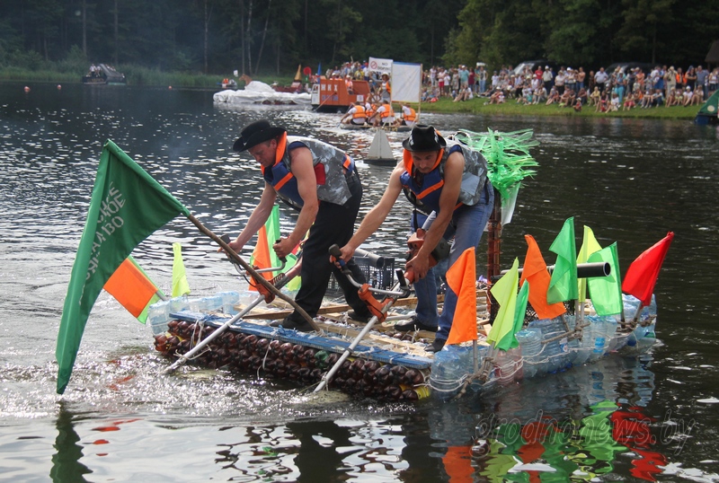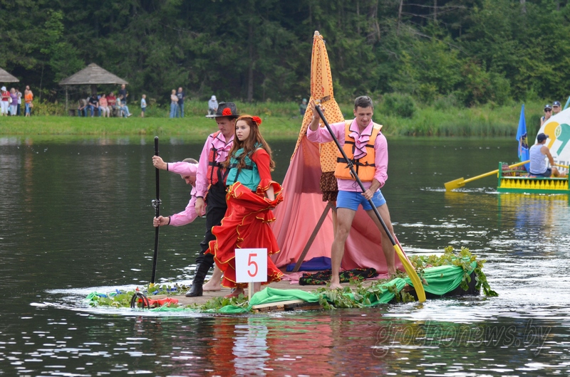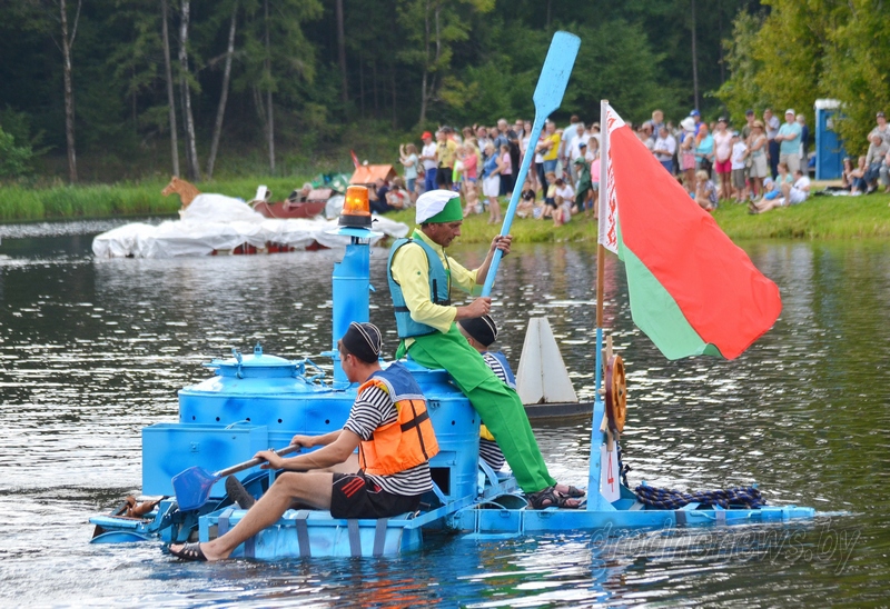 Самым ожидаемым событием этого праздника стали областные спортивные состязания в плавании «на чем попало». Участие в заплывах приняли 19 команд со всех районов Гродненщины. Кстати, нынешним соревнованиям предшествовали отборочные в районах, поэтому с полной уверенностью можно сказать, что сегодня на волную гладь Августовкого канала были спущены лучшие из лучших самодельные плавательные средства. Тематика презентаций команд была разнообразной – от Нового года до нынешних летних Олимпийских игр, проходящих в Рио-де-Жанейро. Главное условие – доплыть до финиша выполнили все участники, доказав, что их плавательные средства изготовленные собственноручно способны держаться на плаву. Но помимо этого им предстояло бороться и по другим позициям – оригинальности, музыкальности и другим параметрам.