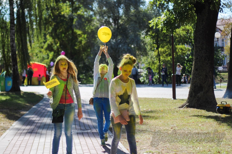 С самого утра гуляния начались в парке Жилибера. Эпицентром событий здесь стала летняя эстрада, где с утра до вечера проходит детский праздник красок «ColorFest». Толпу зажигали ребята из творческого объединения IKAR и дискотека от гродненских диджеев.Весь парк заполонила молодёжь с лицами и одеждой всех цветов радуги. У фонтанов расставили свои палатки Гродненский хоспис и благотворительный Центр «ПОРА». У них можно было посетить волшебный планетарий и поучаствовать в благотворительной ярмарке: купить картинуили текстильную игрушку и тем самым помочь больным деткам.