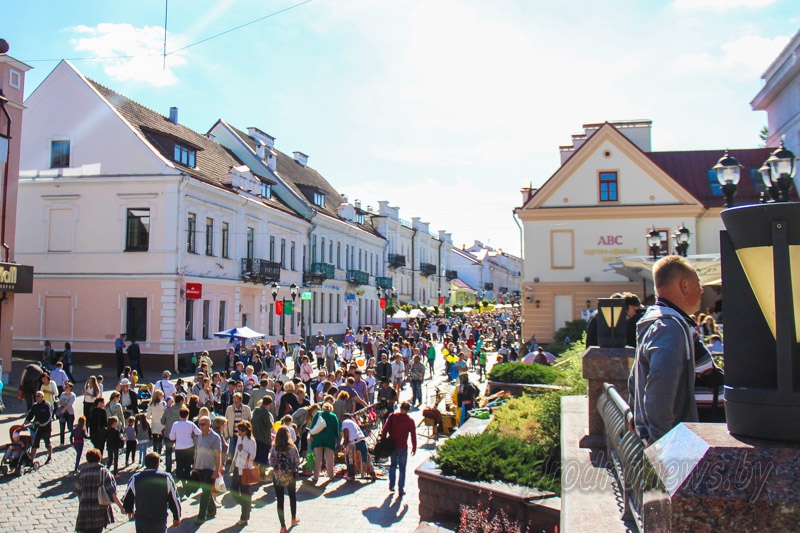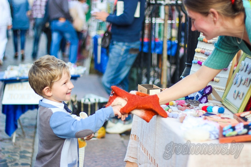 На Советской прохожих развлекали мимы, живые статуи, а свои поделки, сувениры, картины предлагала целая улица мастеров. Текстиль, одежда, валяные и стеклянные игрушки, памятные монетки, бижутерия, сувениры с Гродно – здесь можно было найти практически всё, чего душа пожелает. Лучшие уличные музыкантытоже решили поддержать празднование и заполнили улицу перестуком барабанов и гитарными риффами.