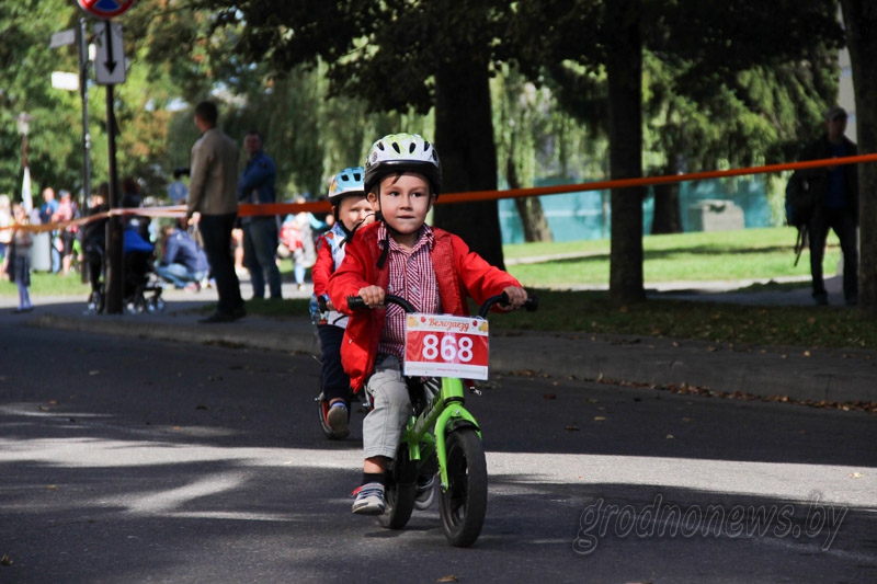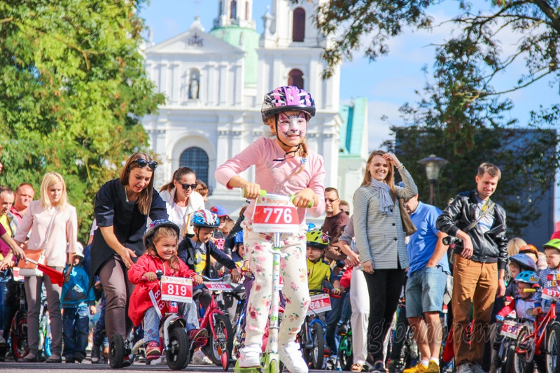 На улице Замковой прошел весёлый Детский Велозаезд. Малыши от в возрасте от 2 до 6 лет соревновались на беговелах, самокатах, двух- и трёхколёсыхвелосипедах. На всей дистанции их активно подбадривали родители, а на финише встречали персонажи мультфильма «Маша и медведь». Детский Велозаезд стал первым мероприятием организации «ВелоГродно» в рамках Европейской Недели мобильности, которая проходит с 16 по 22 сентября.Самые быстрые и шустрые малыши получили дипломы и сувениры от компании “Молочный мир” и Экологического товарищества “Зелёная сеть”.
