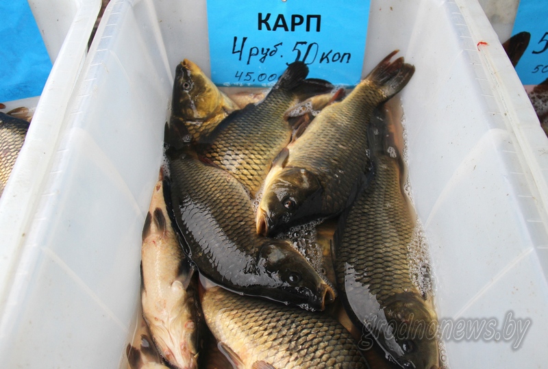 “Приехали” карпы из Минской области, Молодечненского района. Цена за килограмм - 4 рубля 50 копеек.