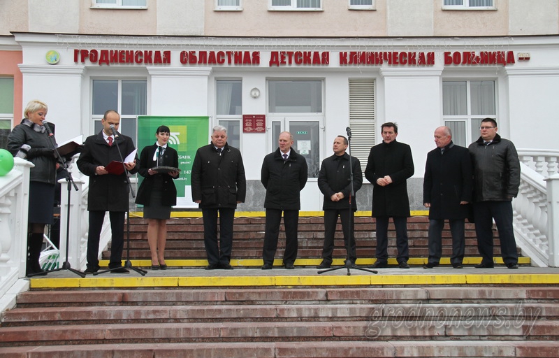 Он приобретен ОАО «АСБ Беларусбанк» в рамках специальной благотворительной программы. В торжественной церемонии передачи подарка лечебному учреждению приняли участие председатель облисполкома Владимир Кравцов, председатель правления ОАО «АСБ Беларусбанк» Сергей Писарик, начальник филиала №400 – Гродненского областного управления ОАО «АСБ Беларусбанк» Иван Гомон, начальник главного финансового управления облисполкома Павел Ошурик и начальник управления здравоохранения облисполкома Андрей Стрижак.
