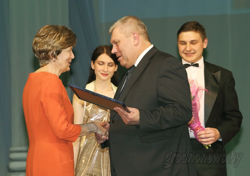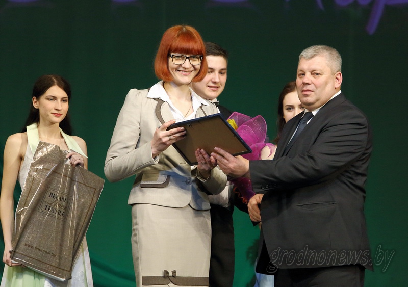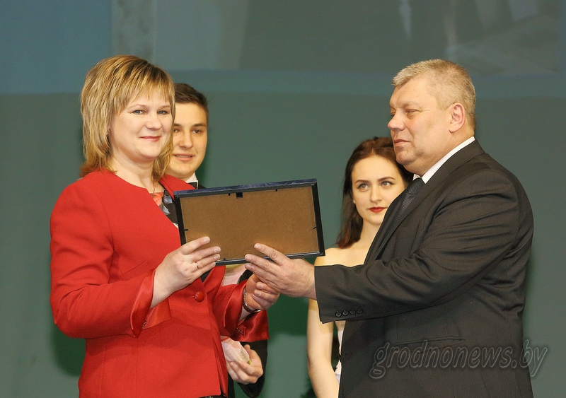Мечислав Гой вручил награды победительницам городского конкурса «Женщина года-2016». В номинации «За лидерство и успешное руководство» награждена заместитель генерального директора ОАО «Молочный мир» Оксана Вишневская.