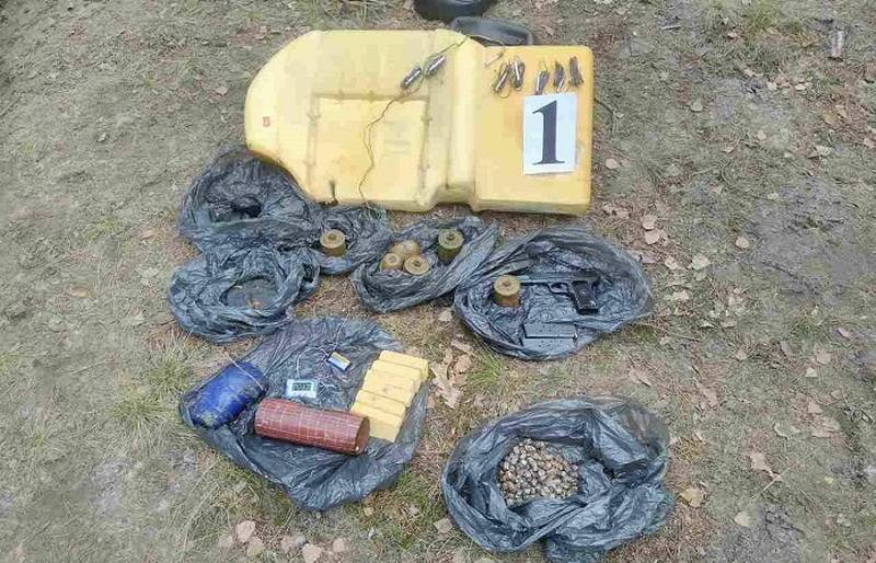 Были обнаружены пистолет марки ТТ и два магазина с патронами к нему, а также предметы, внешне похожие на тротиловые шашки, электродетонаторы, гранаты РГД–42, пластид и самодельное взрывное устройство.