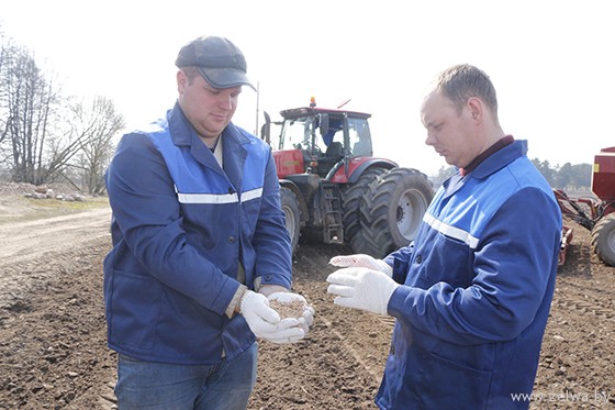 – Вясна прыйшла рана і прынесла шмат вільгаці, – канстатуе Алег Пятровіч. – Сонечнае надвор’е ўжо падсушыла большасць палеткаў, таму тэхніка можа тут працаваць без перашкод. Каб атрымаць багаты ўраджай, строга выконваем усе тэхналагічныя патрабаванні на сяўбе: глеба павінна прагрэцца да 5-7 градусаў, а глыбіня задзелу пад зерне складаць 2-3 см. На кожны гектар зямлі мы высяваем па 250 кг ячменю.