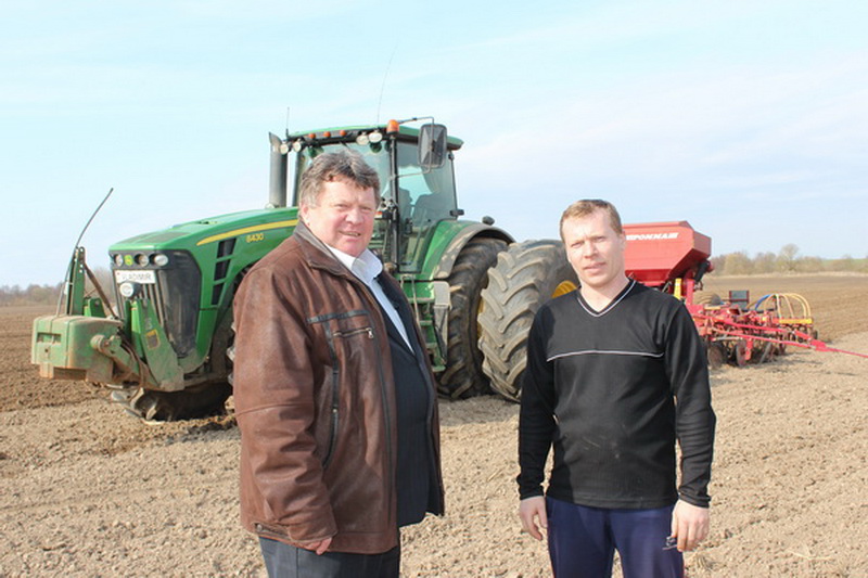 В тот день, когда мы посетили хозяйство, механизатор Владимир Коледа начинал сеять пшеницу на поле у деревни Казённые Лычицы. Надо отметить, что Владимир является одним из лучших работников хозяйства и из года в год большую часть площадей он засевает один.