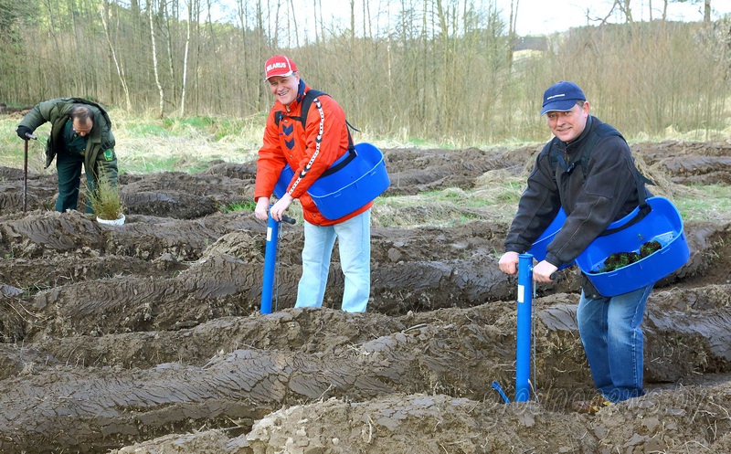 Эту технологию в Гродненской области освоили три года назад. Семена сосны выращивают до небольшого саженца в кассетах в специальных тепличных условиях. Затем саженцы помещают в короба, откуда их и высаживают с помощью специальной посадочной трубы. В этом случае с посадкой справляется один человек. А вот лиственницу высаживали традиционным способом: один человек с помощью меча Колесова прорубал лунку, другой опускал в нее саженец.