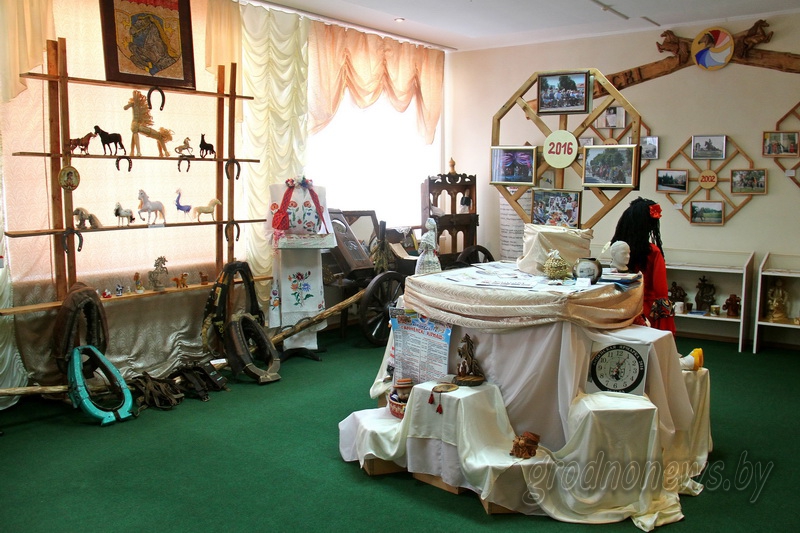 Подтверждением этого – центральная экспозиция музея, рассказывающая о лошадях и конной амуниции. Слова экскурсовода разовьет собственная фантазия, и посетитель незаметно «переместится» на ярмарку, потолкается у прилавков в толпе сельчан и, если не помешает гул голосов, услышит фырканье лошадей и скрип несмазанных колес телеги. К слову, колеса телег, размещенных в музейной комнате, относятся к началу XX века.