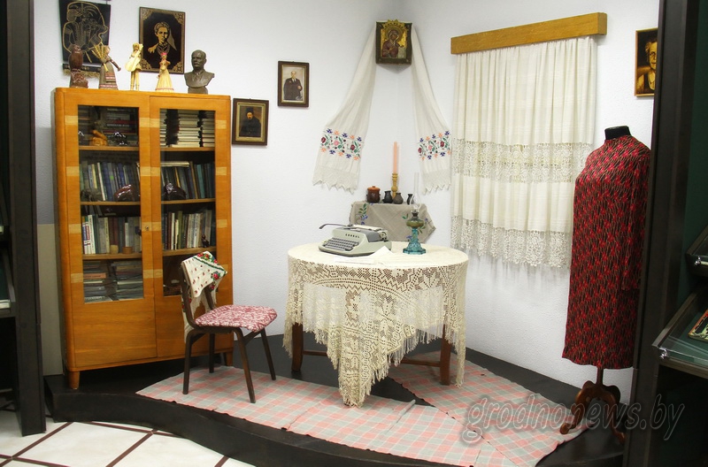 Вторая изюминка музея – экспозиция быта. Казалось бы, что здесь особенного – такие уголки есть в каждом районном музее. Но только в Гудевичах эта экспозиция создана в настоящем старом доме. В 1981 году при поддержке местного колхоза перевезли его из деревни Семеренки. Сколько ему лет, доподлинно неизвестно. Но в музее от одного поколения сотрудников другому передают воспоминания Алеся Белокоза: «Когда выбирали хатку, а в Семеренках их было несколько, то самый старший житель деревни, а ему тогда было 92 года, говорил так: когда он был маленький, его бабушка ему говорила, что когда она была маленькая, то хатка эта уже стояла и была не новая». Вот и считайте. В помощь – еще одно мнение: знатоки утверждают, что способ, каким сложены углы в избе, был характерен для екатерининских времен.