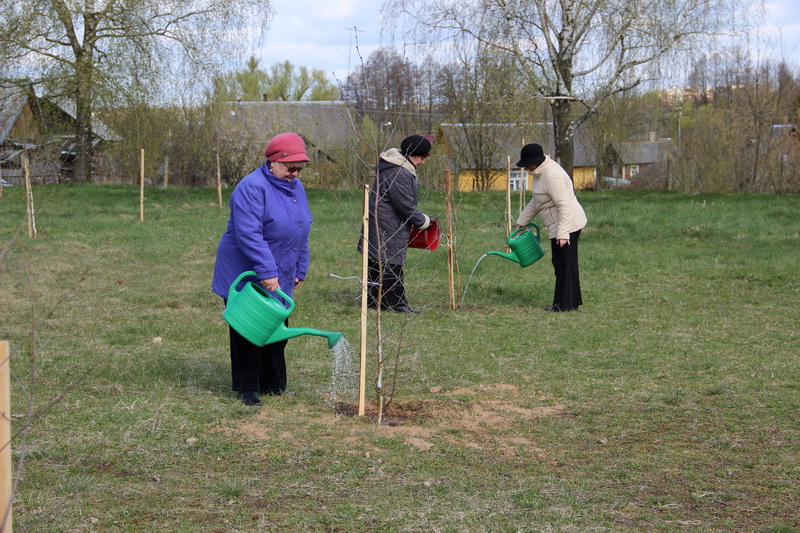 Зеленую зону участники субботника разбили на территории стадиона бывшей спортивной школы. Молодежь высадила там сто берез. Представители совета ветеранов занимались поливом саженцев. Таким образом пустующий пятачок земли удалось облагородить в считанные часы.