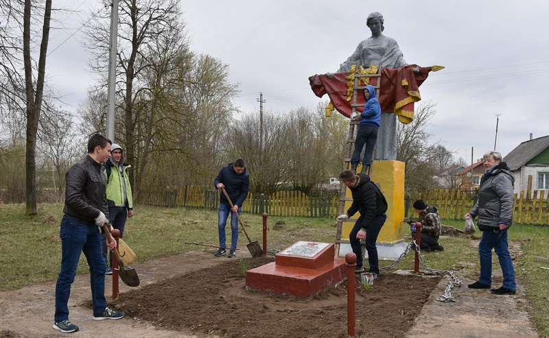 Учащиеся учреждений образования района принимали активное участие в благоустройстве и наведении порядка на территориях, прилегающих к памятникам погибшим землякам в годы ВОВ и воинским захоронениям. Отделом идеологической работы, культуры и по делам молодежи совместно с общественными организациями Дятловского района (БРСМ, "Белая Русь", БСЖ) накануне субботника была проведена работа по благоустройству сквера возле памятника воинам-интернационалистам.