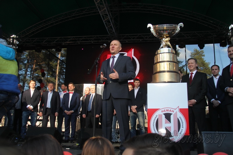 - Прошедший сезон был самым успешным для наших хоккеистов, - отметил Владимир Васильевич. – Они стали обладателями Кубка Салея, чемпионами страны и завоевали Кубок Президента Республики Беларусь. Это дает им право выступить в Лиге Чемпионов, что обещает всем нам много новых положительных эмоций. Весь сезон мы наслаждались серьезной, интересной и увлекательной игрой «Немана». И он по праву стал чемпионом! Хочется поблагодарить хоккеистов и их наставников, а также всех болельщиков, которые поддерживали наш «Неман» и верили в его победу.