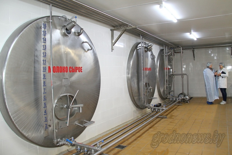 – Прежде чем снять пломбы с люков, обязательно нужно пройти санобработку. Только после этого можно брать молоко на пробу для проведения анализов качества в лаборатории, – рассказывает инженер-технолог производственного цеха «Берестовица» ОАО «Молочный Мир» Татьяна Жлабович. – За день поступает около 110 тонн сырья.