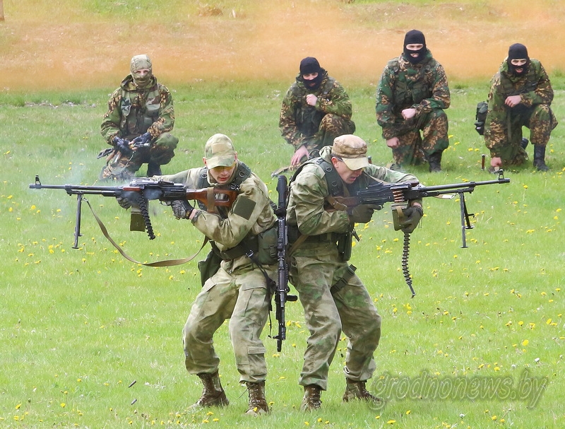Торжественным маршем прошли войска Гродненского гарнизона. Горожане смогли увидеть показательные выступления войск Западного оперативного командования на территории комплекса оборонительных сооружений «Рубеж имени Д.М.Карбышева».