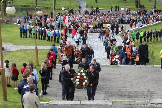 Война унесла жизни более пятидесяти тысяч жителей Гродненщины. В память о них были возложены гирлянды Памяти, венки и цветы к Вечному огню.