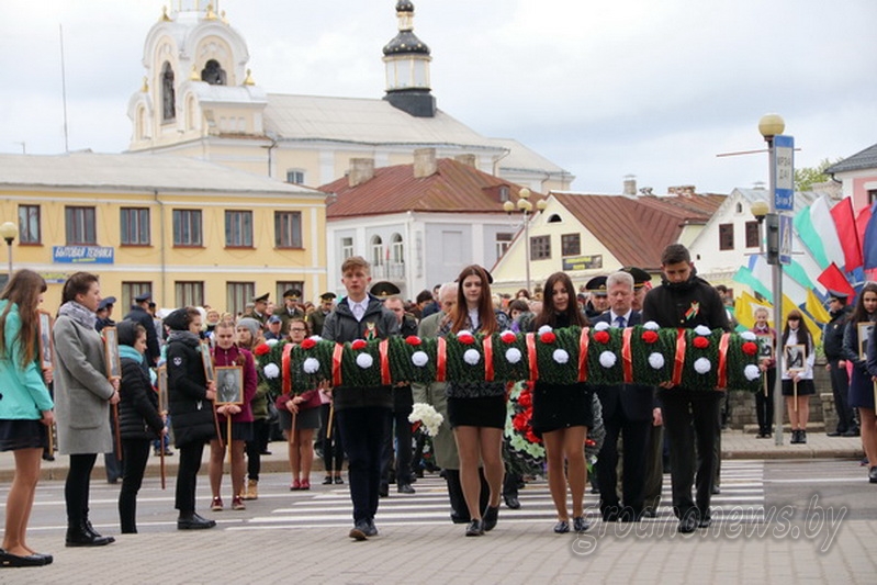 Тысячи гродненцев приняли участие в праздновании Дня Победы. Шествие памяти к знаковому для каждого гродненца месту – Кургану Славы – возглавили ветераны Великой Отечественной войны, руководство области и города. В праздничной колонне прошли работники предприятий и организаций, школьники и студенты, военнослужащие. Многие несли фотографии фронтовиков.